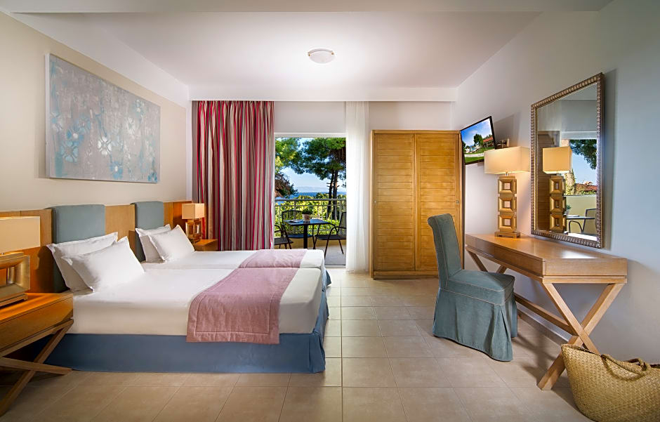 Spacious, air-conditioned room with a fridge, hairdryer and TV with satellite channels. Its balcony offers views of the Kassandra Bay, the pool or the garden.